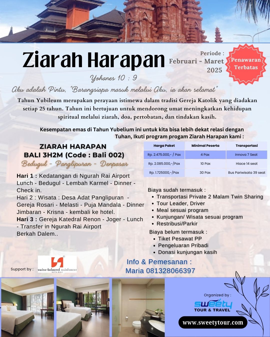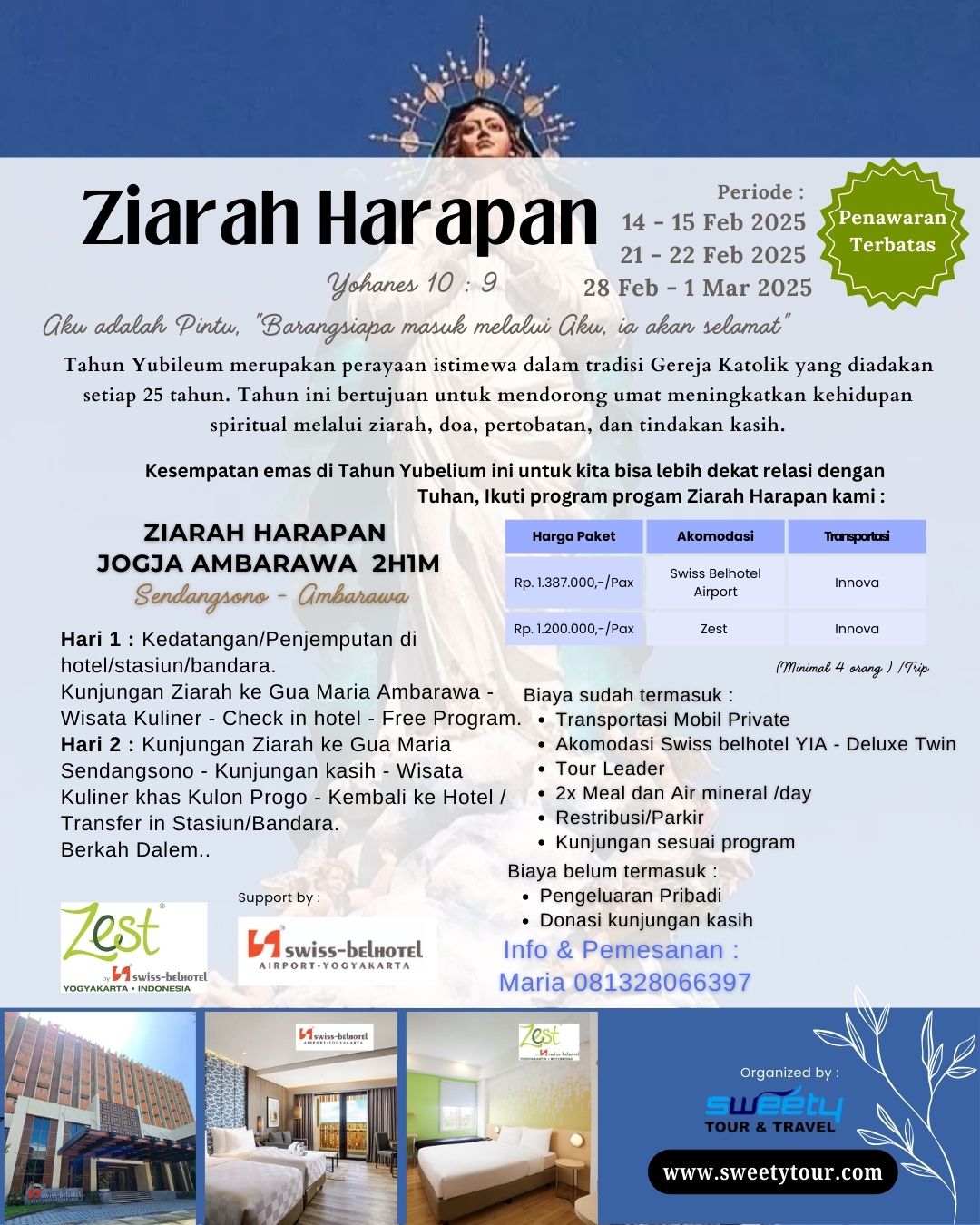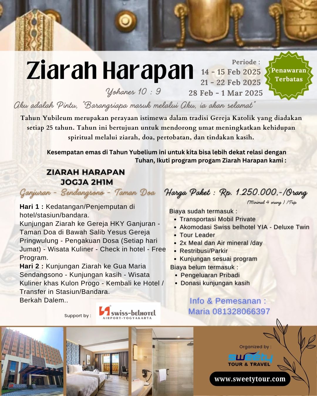 Kesempatan emas di Tahun Yubelium ini untuk kita bisa lebih dekat relasi dengan Tuhan, Ikuti program progam Ziarah Harapan kami :